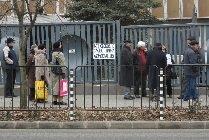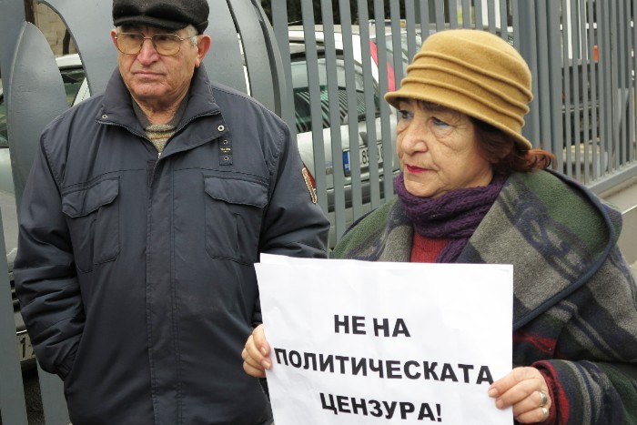 Едва десетина души се събраха днес пред БНР, за да протестират по традиция срещу свалянето на предаването „Деконструкция” с водещ Петър Волгин.