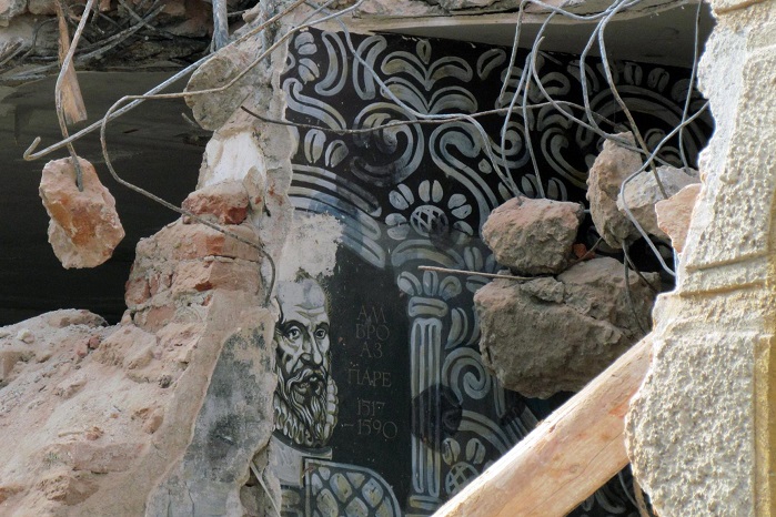 Сутринта пред склада бе и художникът Вълчан Петров. Той е автор на стенописите с мотиви от историята на фармацията, които са украсявали бившата аптека № 22, която се помещаваше в склада преди реституцията му.