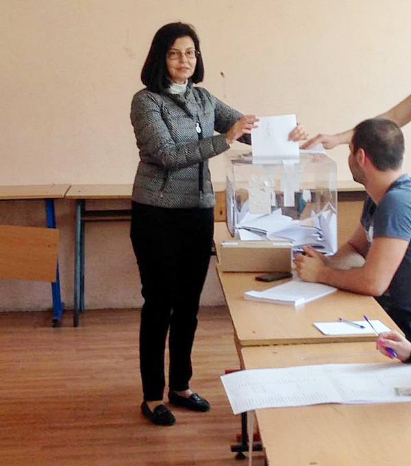 Лидерката на ДБГ Меглена Кунева само публикува снимка как пуска бюлетината и не коментира.