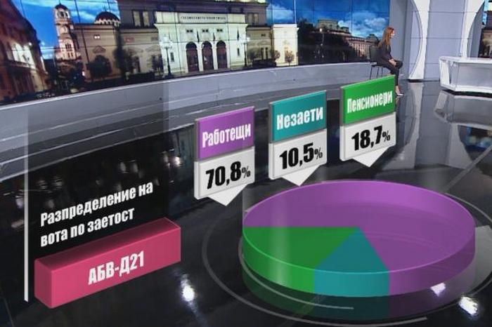 Изненадващ в това отношение е резултатът на „АБВ - Движение 21“ - 70,8% от гласовете за коалицията идват от активно трудещи се хора, но предвид слабия й резултат като цяло не става дума за особено голям процент.