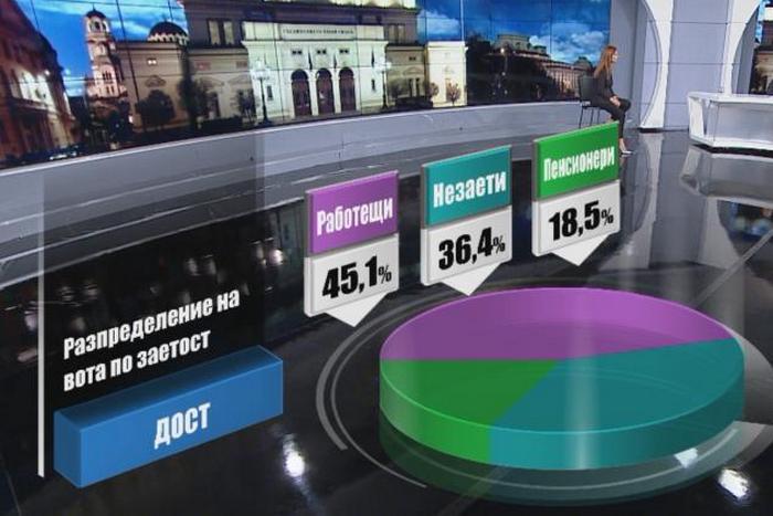 Процентно най-голяма подкрепа от работещите е получила „Да, България“ – 80,8% от бюлетините за нея са дошли от активно трудещи се хора.