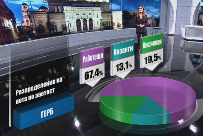 От десните следва ГЕРБ с 67,4% от бюлетините, пуснати от работещи.