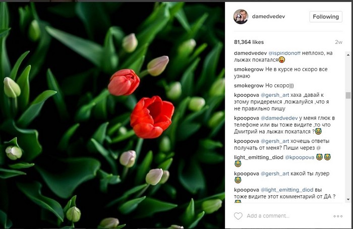 Последното послание на Медведев в тази социална мрежа е от 8 март, в който той честити на жените празника. Вчера обаче много хора го питат там как е прекарал деня.