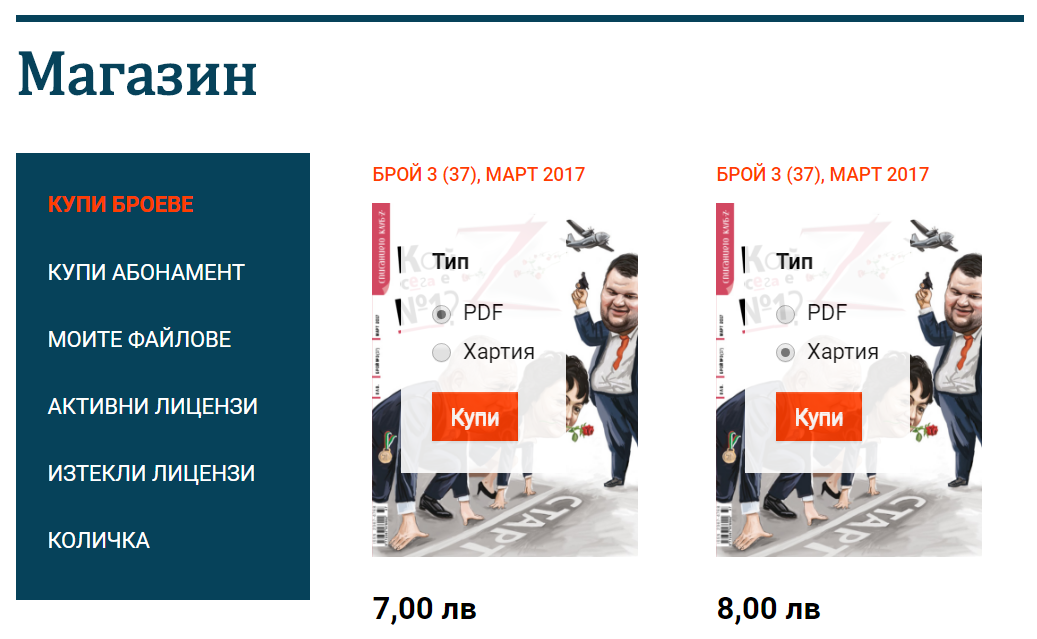 А ето и как да си купите един или повече броеве от нашия магазин: