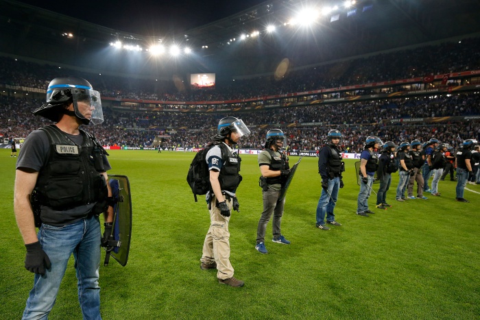 Един от четвъртфиналите в турнира Лига Европа - между "Олимпик" (Лион) и "Бешикташ" (2:1), ще влезе в историята не само с драматичния си край, а най-вече с безредиците преди началото на срещата.