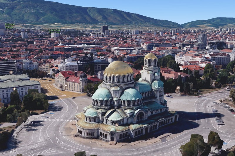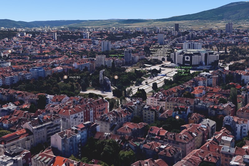 Изключително красиви са множеството места, на които има и 3D модели на сградите, вместо типичната плоска сателитна снимка на повърхността. Ето го например центърът на София: