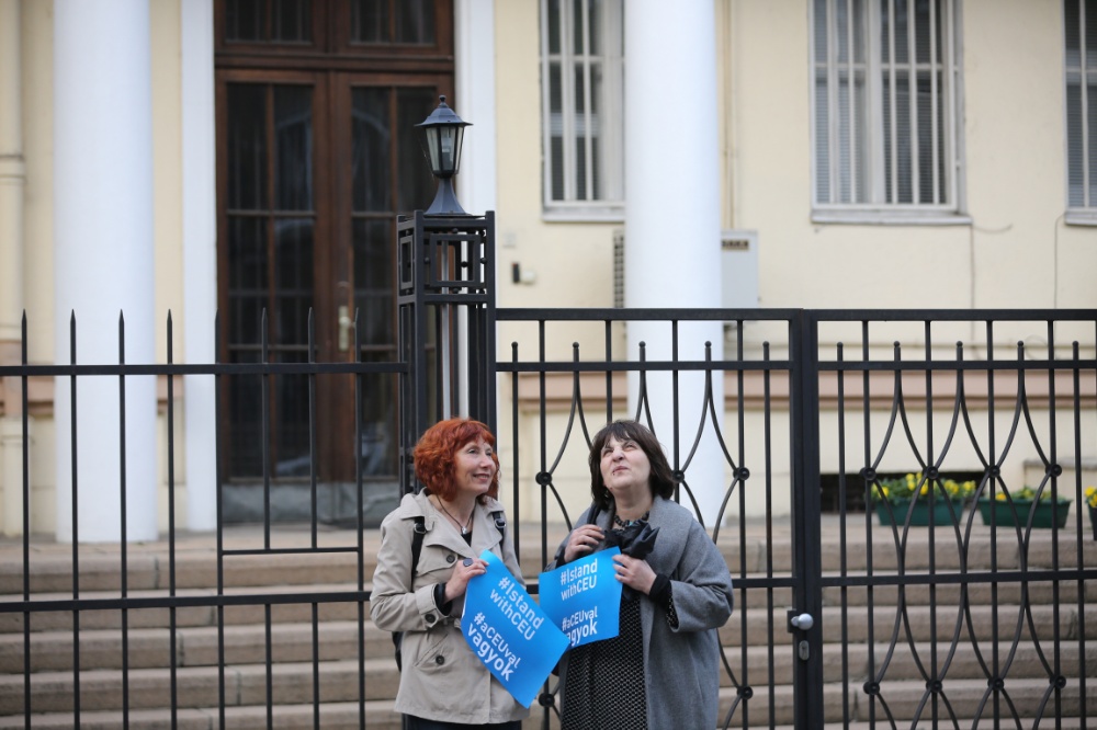 Българи се събраха на мирен протест в защита на Централноевропейския университет във вторник вечер пред посолството на Будапеща в София. Те носеха плакати с хаштага за солидарност #I stand with CEU (#аCEUval vagyok - в унгарски вариант). Целта на протестиращите: