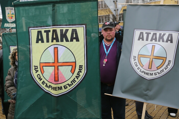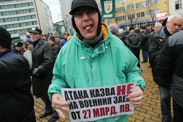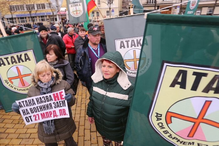 Няколко десетки привърженици на "Атака" протестират пред Народното събрание заради предстоящото гласуване на предложения от правителството нов дълг от 8 млрд.евро.