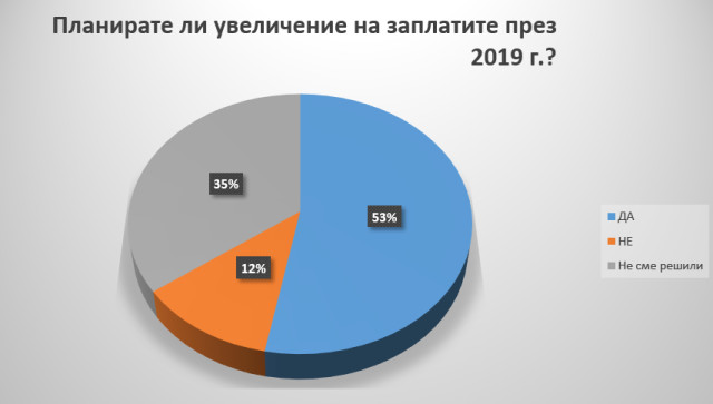 Отново 53% от компаниите възнамеряват да повишат възнагражденията си. 12% не планират увеличение, а 35% от работодателите не са решили все още.