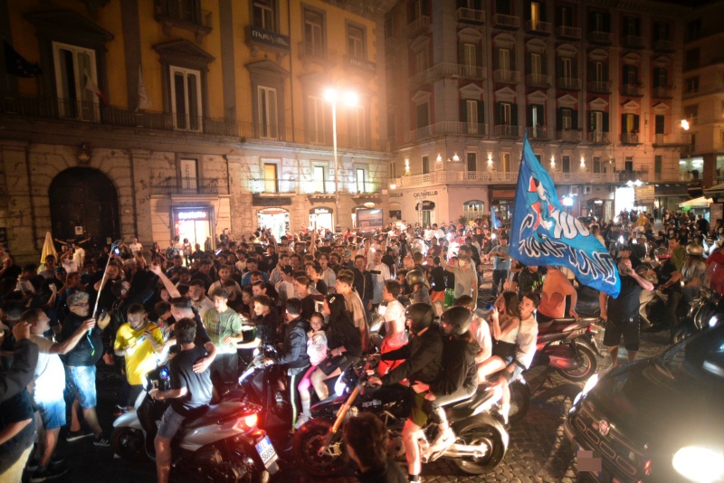 А Неапол празнува - след победната дузпа хиляди излязоха по улиците на града, пренебрегвайки мерките за физическа дистанция и ликуваха до малките часове на нощта.