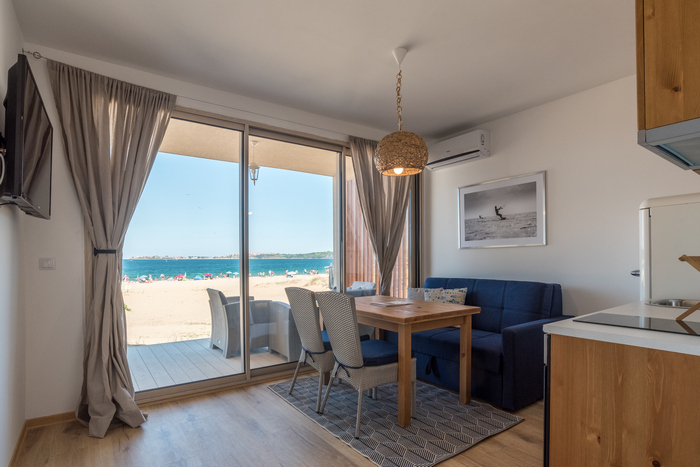 Морските къщички са три вида и са подходящи за настаняване на между 2-ма и 4-ма души, както и за престой на между 4-ма и 6-ма души. Във всяко от тях има изцяло оборудвана дневна с кухненски бокс, който разполага с всички необходими електрически уреди и кухненски принадлежности, хладилник с фризер, самостоятелен санитарен възел с тоалетни принадлежности, както и веранда с мебели и барбекю. В бунгалата се допускат и малки домашни любимци.