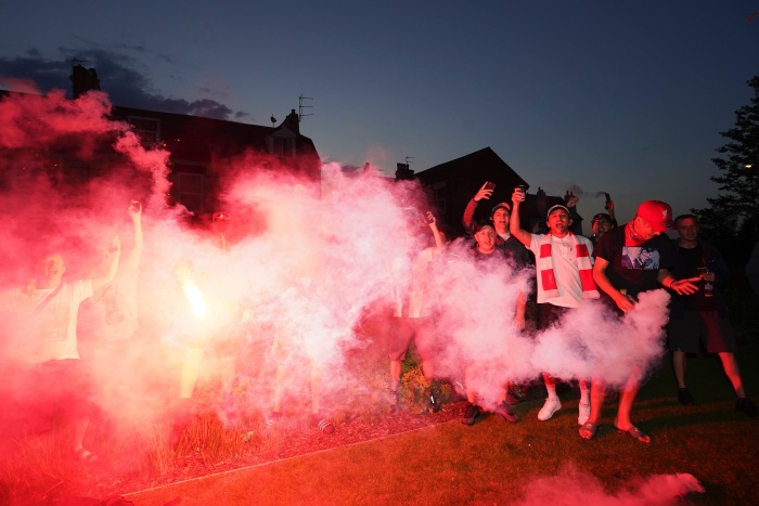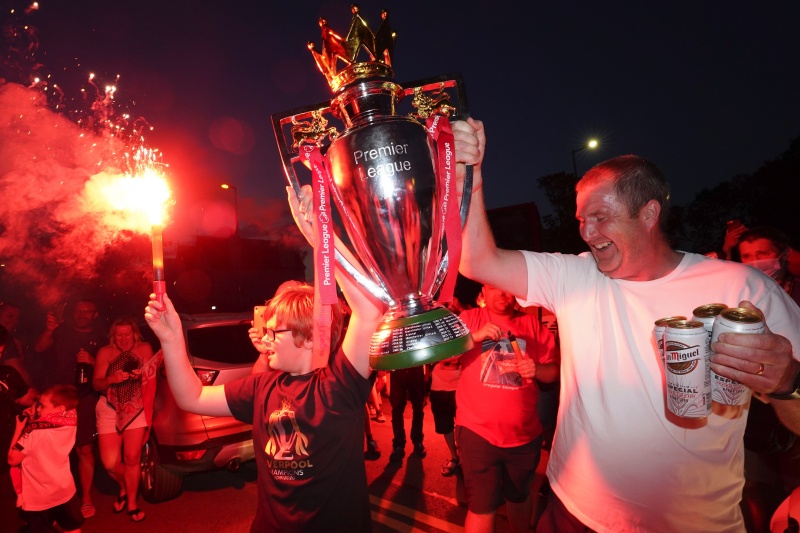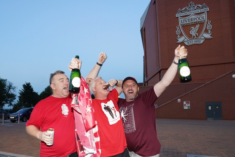 Минути след мача в Лондон хиляди излязоха по улиците в Обединеното кралство - най-вече в Ливърпул, за да празнуват. Те пренебрегнаха препоръките за физическа дистанция. Около "Анфийлд" се стекоха много хора и дълго не си тръгнаха.