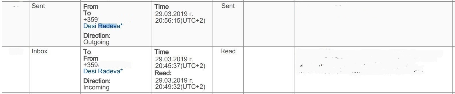 Комуникацията се публикува с разрешение на наблюдаващите прокурори съгласно чл. 198 от НПК. Същата се съдържа в експертиза на мобилен телефон, ползван от П.Б.