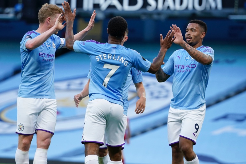 Преди почивката домакините набързо вкараха три гола - разписаха се Кевин де Бройне от дузпа (25-ата), Рахим Стърлинг (35-ата, изработи преди това 11-метровия удар) и Фил Фодън (45-ата).