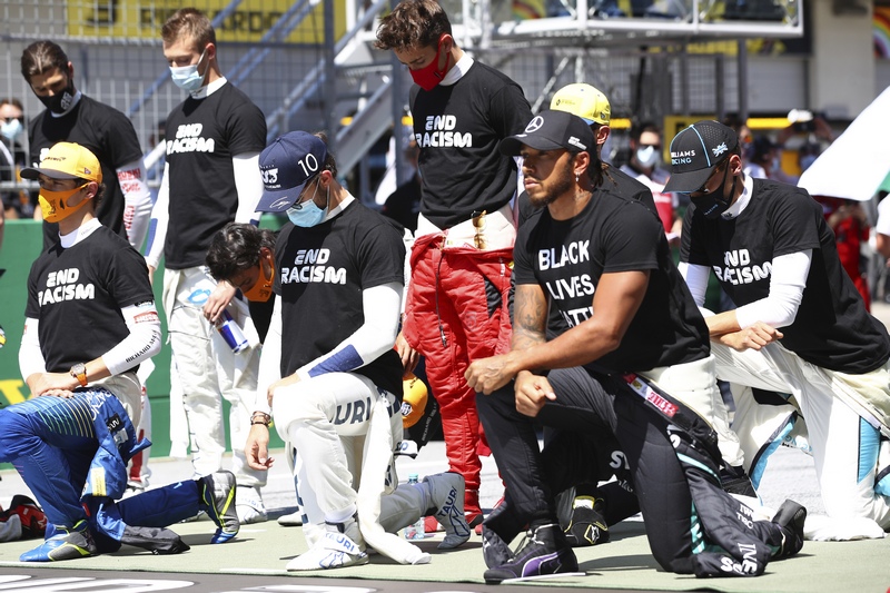 Надпреварата започна със символичен акт на пилотите против расизма и в подкрепа на движението Black Lives Matter. Шестима обаче не коленичиха, начело с Шарл Льоклер и Макс Верстапен.