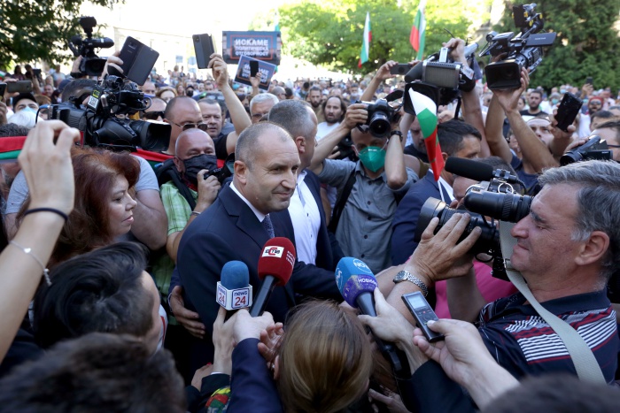 Излизайки от президентството Румен Радев призова полицията, която в плътен кордон го отделяше от протеста, да се отдръпне, за влезе сред демонстрантите. "Ние с г-жа Йотова няма от какво да се страхуваме", каза той.