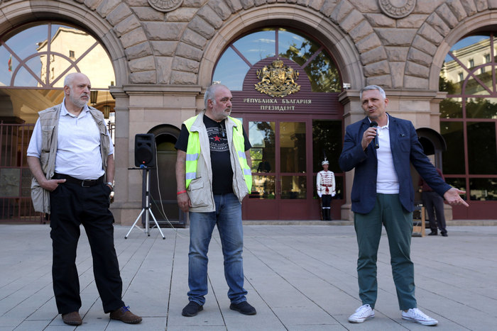 "Днес България е на ръба на конституционна криза, - каза Иванов. - Тук сме, за да поискаме отговорност от българските власти, за това че толерират срастването на Пеевски и Доган с българската държава. Искаме оставката на Бойко Борисов, който трябва да поеме политическата отговорност за това. Както и на главния прокурор Иван Гешев, който наруши конституцията като организира нахлуване в президентската институция. Президентът Радев беше наказан публично за това, че посмя да изкаже очевидното за всички - гардовете на НСО охраняват Доган и Пеевски и за това няма причина", заяви Христо Иванов.