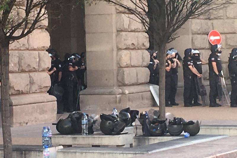 Огромен брой полицейски служители направиха защитен кордон между протестиращите и сградата на правителството.