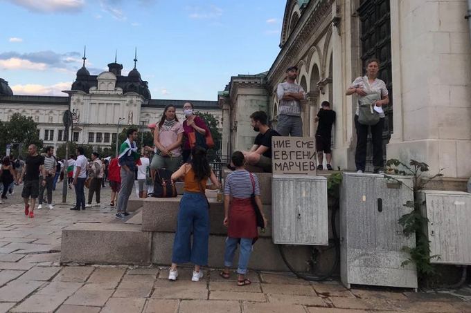 "Ние сме Евгени Марчев" - по името на едно от битите от полиция момчета - бе един от импровизираните плакати на деня.