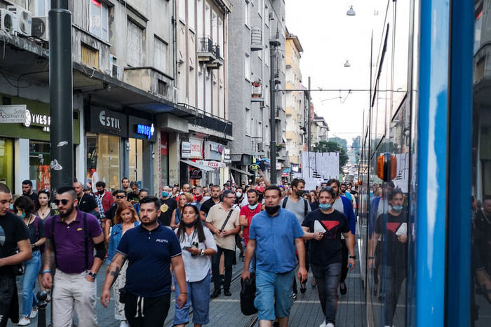 Около 18,50 часа потестът се отправи към т.нар. Триъгълник на властта - за да се слее с множеството, което днес излезе за осми път на площада.