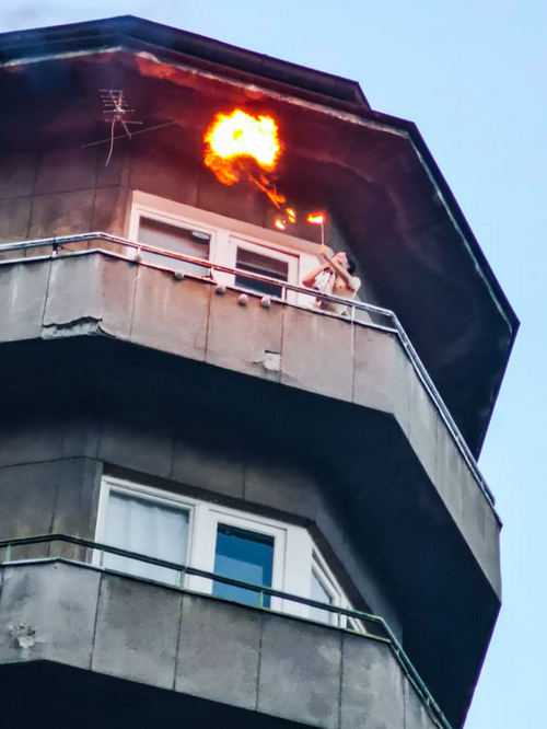 Протестиращите получиха и интересна подкрепа от... гълтач на огън. Докато шествието минаваше през "Славейков", младеж от последния етаж на жилищна сграда удиви хората с пиротехническите си умения. И получи множество аплодисменти.