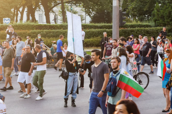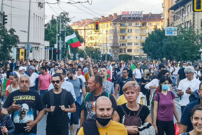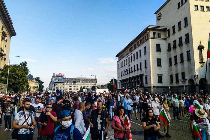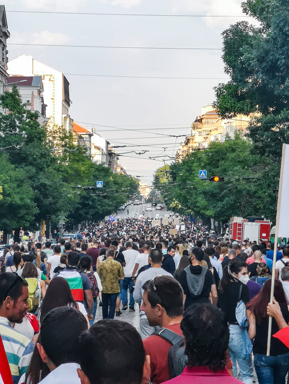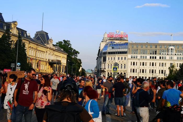 В 19,45 часа протестът вече наброяваше няколко десетки хиляди граждани. Скандиранията "Борисов е позор, оставка и затвор!", "Оставка!", "Довиждане!" ставаха все по-мощни.