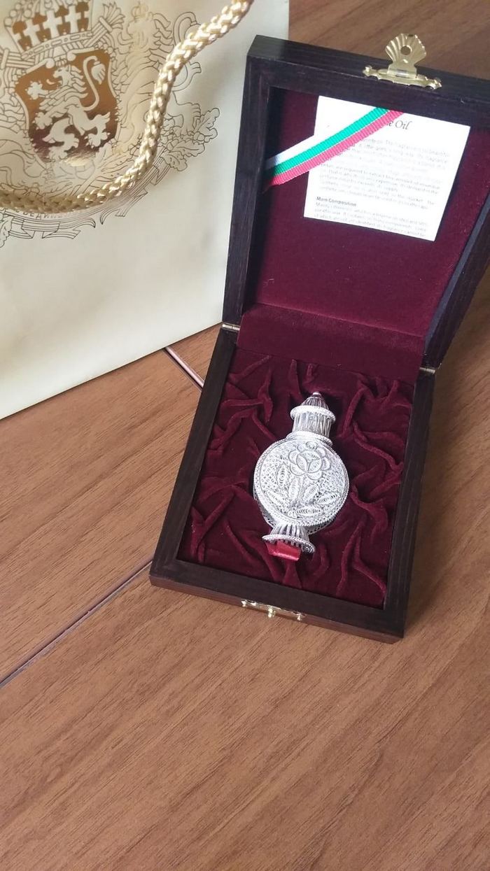 Борисов съобщи във фейсбук, че е подарил на Меркел сребърна бъклица с розово масло. Той пожелал и успех на германското председателство на Съвета на ЕС.