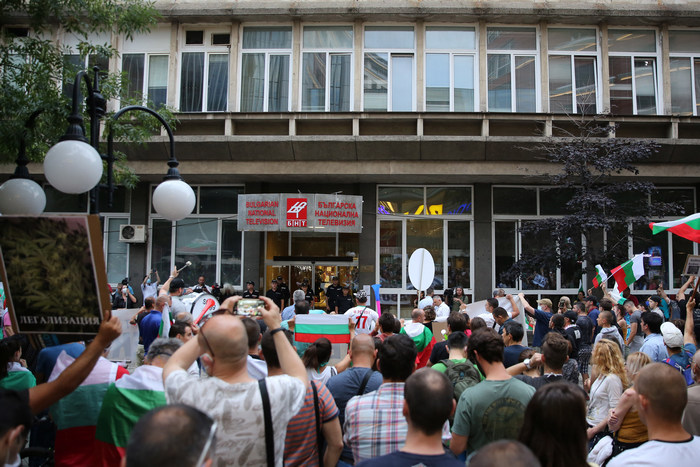 Пред входа на националната левизия ехтеше: