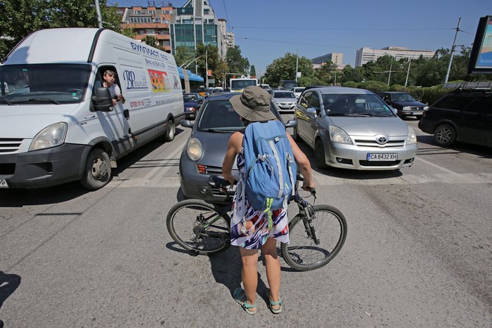 Блокирано бе и трамвайното трасе, както и автобусите, за които по "България" има отделна буслента, но се допускаха автомобили на Спешната помощ,