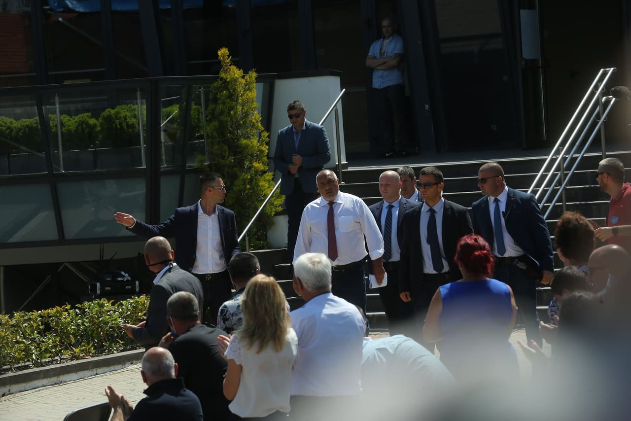 Всичко това Борисов заяви пред около 4000 души актив на партията на изнесена навън национална конференция на ГЕРБ, съпроводена с протести, като анонимни яки момчета посягаха на демонстранти, както и на снимащите ги.