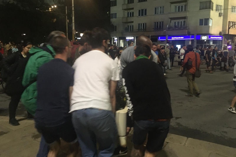 Още привечер протестиращи пресичаха многократно пешеходната пътека между банката и сградата на бившия Партиен дом може би с идеята отрано да блокират движението.