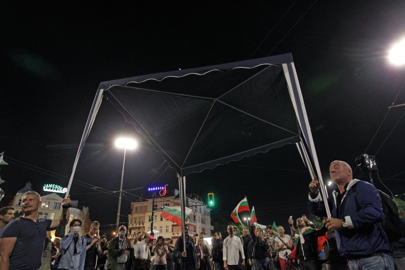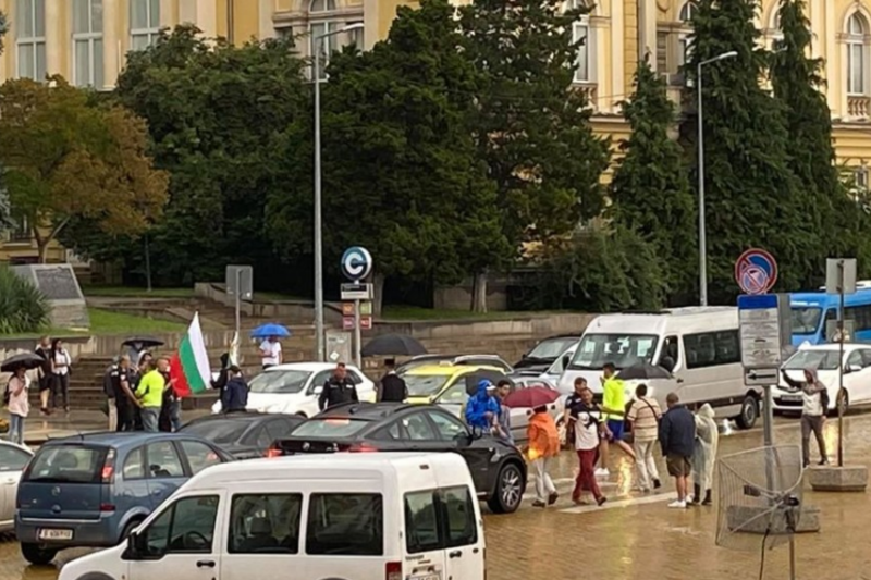 Около 19:30 ч движението в Триъгълника на властта беше блокирано. Броят на хората не бе голям - може би заради дъжда. Протестът днес, обявен под наслова "Бунт срещу диктатурата на Борисов" от Отровното трио, започна официално в 20 часа със специално обръщение.