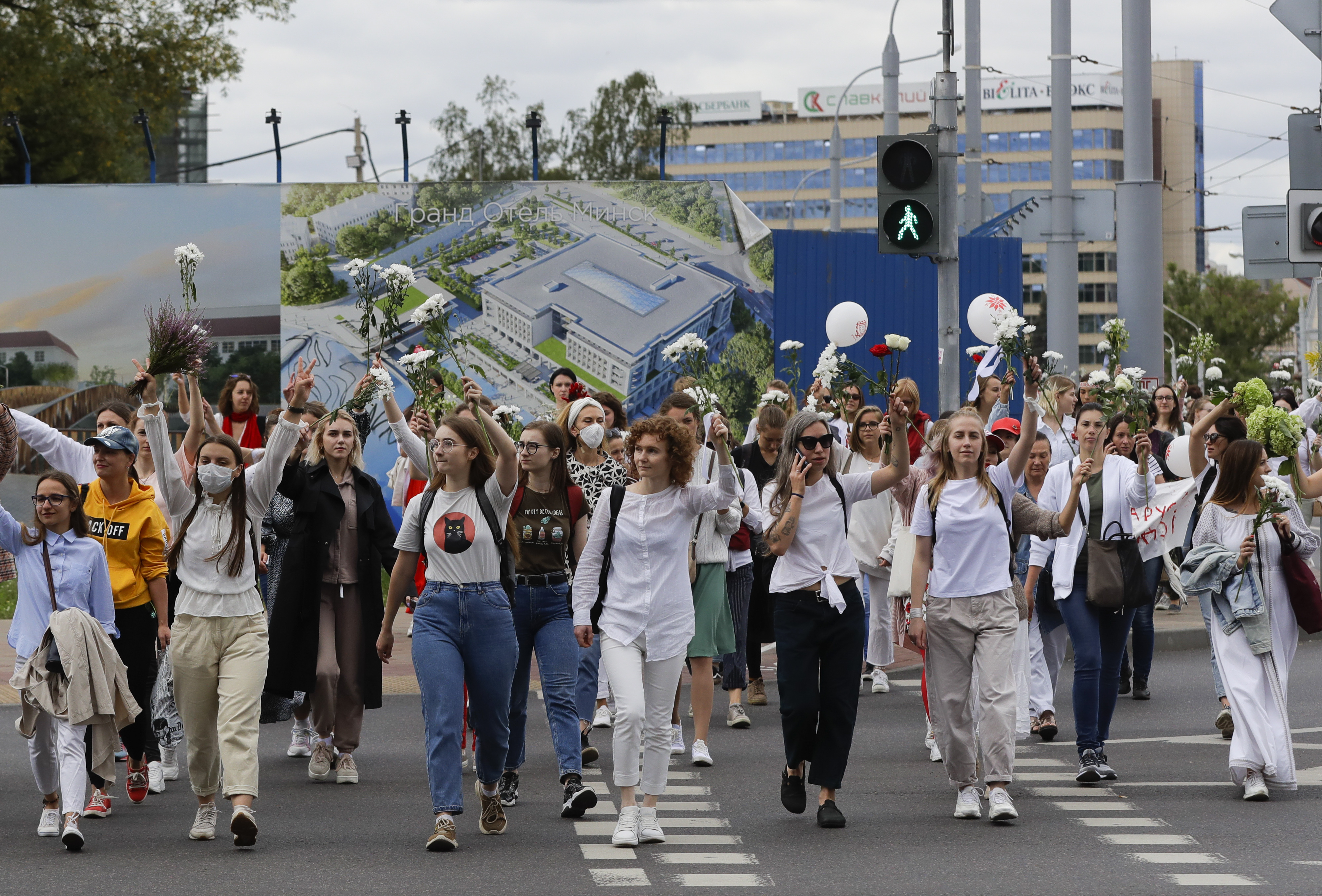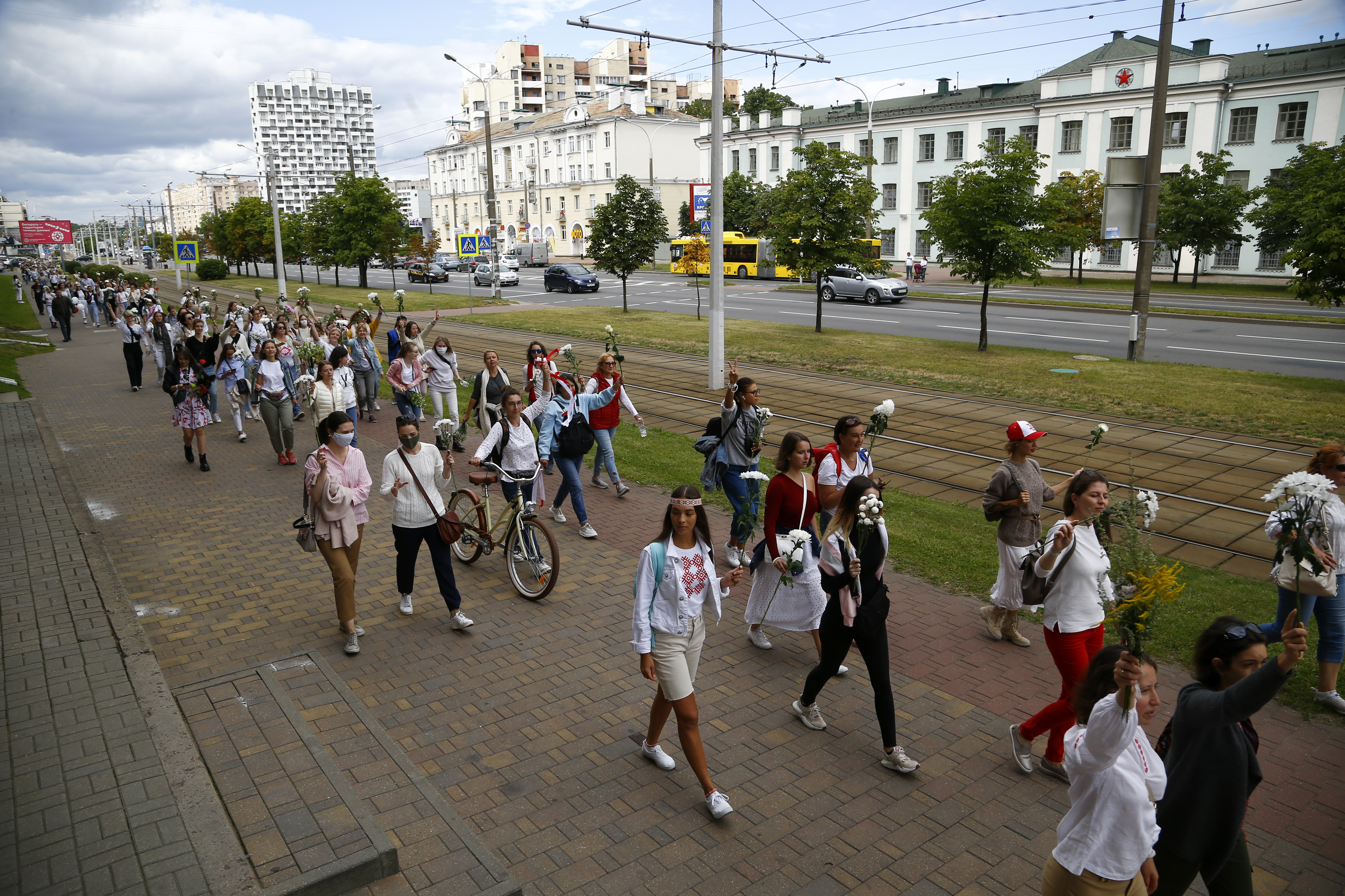 Миналата вечер в няколко района на столицата големи групи от жени сформираха дълги "линии на солидарност". Повече от 100 жени, носещи цветя и портрети на свои близки, които са били арестувани по време на протестите, се събраха в югозападната част на града, където полицията използва гумени куршуми срещу демонстрантите.