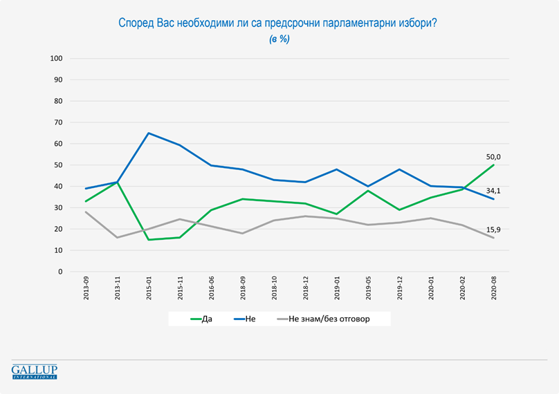 Това са част от изводите от националното изследване на "Галъп интернешънъл", проведено от 30 юли до 7 август сред 811 пълнолетни българи. Теренът е преди анонса на Бойко Борисов за конституционни дебати и няма как да отрази потенциалния ефект.
