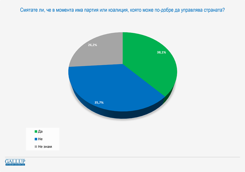 38,1% казват, че в момента има партия или коалиция, която да може по-добре да управлява страната, но почти толкова – 35,7% – казват, че няма такава. Останалите се колебаят.