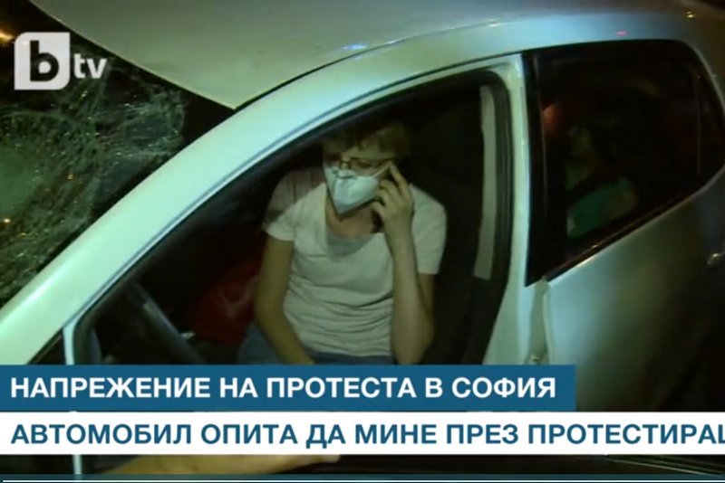 По-късно колата е била преместена в 1-во районно управление. Полицията е отправила призив към протестиращите, които са пострадали от инцидента, да подадат сведения.