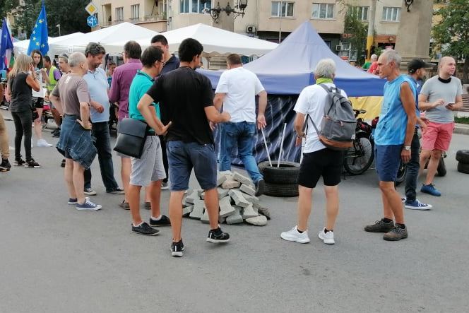 По същото време група граждани се ляха събрали пред румънското посолство, без да спират движението. Те защитиха жената от предишната вечер и скандилаха "Не на насилието".