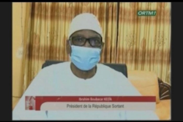 С изтощен вид и носещ хирургическа маска на лицето Кейта обяви оставката си в кратко обръщение на живо по държавната телевизия само броени часове след като войниците го задържаха заедно с премиера Бубу Сисе и други висши официални лица.