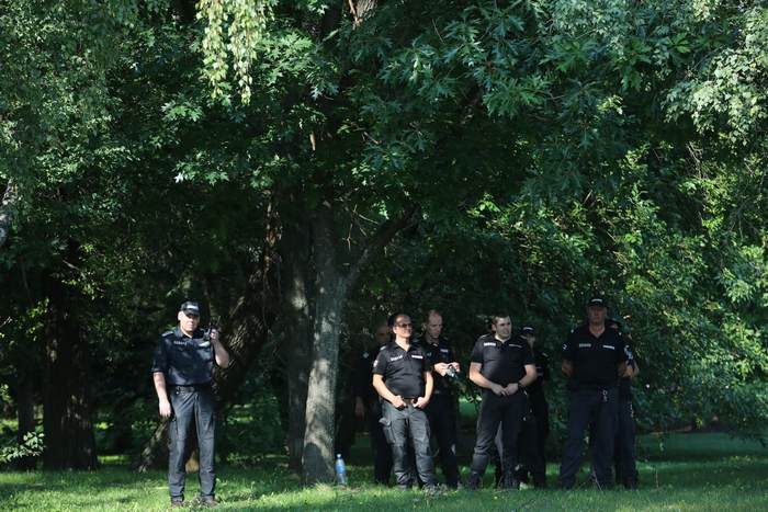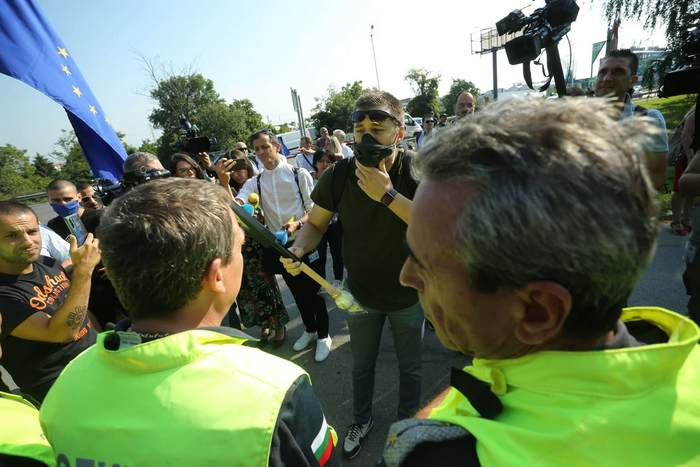 Полицията обаче бе отцепила целия район от ранни зори. Струпана бе тежка техника, а пътят, минаващ пред оградата на резиденцията и футболния съюз и цялото Околовръстно, бе заграден с полицейски ленти. По време на "посрещането" се стигна и до леко напрежение между демонстранти и униформени с жилетки "Антиконфликт".