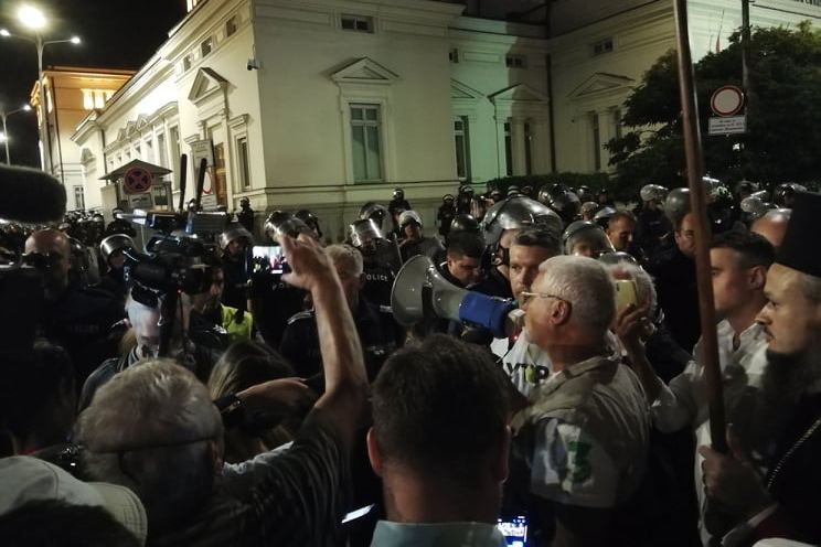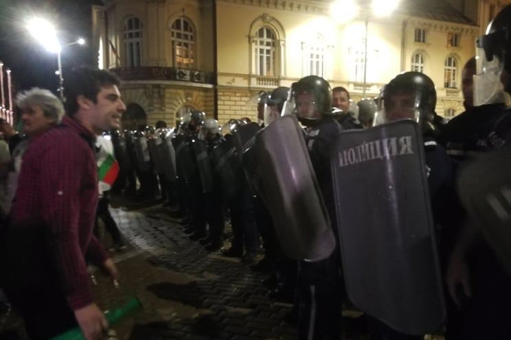 Минути след стълкновенията директорът на СДВР старши комисар Георги Хаджиев обяви, че протестът пред старата сграда на Народното събрание е нергламентиран.