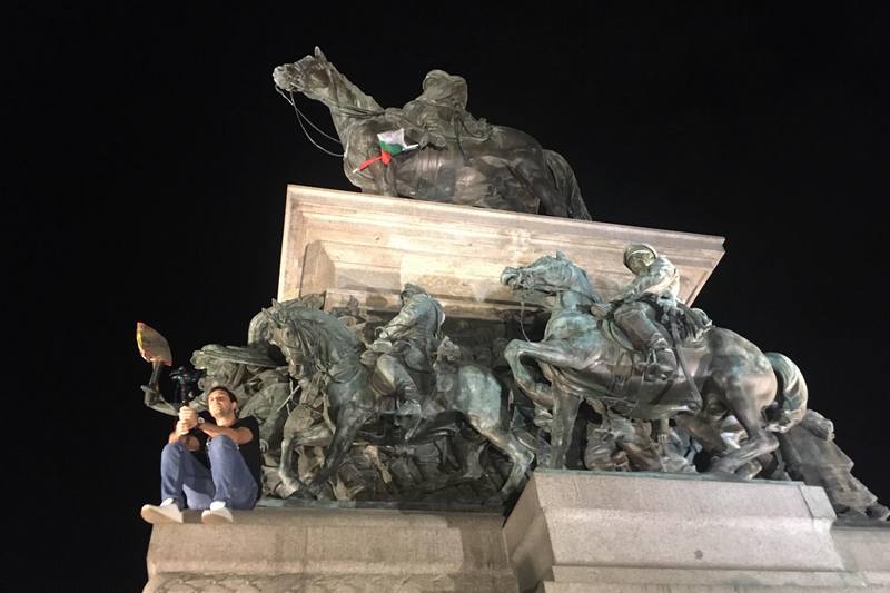 Около 22 часа част от протестиращите поискаха да отдадат почит пред Паметника на Незнайния воин, но полицията не ги допусна да преминат. Бившият депутат и юрист Минчо Спасов (на снимката долу) и негови съмишленици се обадиха на телефон 112 и настояха патрул на МВР да провери защо на протеста има полицаи без идентификационни номера. Според протестиращите МВР няма право да спира движението на протеста и нарушават закона за митингите.