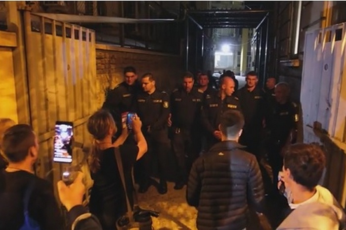 Полицаите се барикадират при страничния вход, от който е излязъл министърът, правейки жива верига.