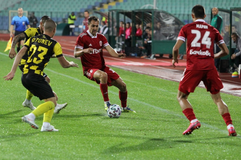 В добавеното време на първата част ветеранът показа за пореден път и че е добър асистент - към Галин Иванов, който удвои.