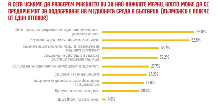 Всеки втори я отбелязва като първа мярка за подобряване на медийната среда в страната (55%).