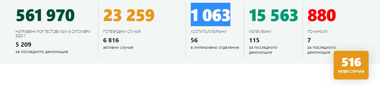 В болници са настанени 1063-ма пациенти. От тях, в интензивни отделения са настанени 56 души.