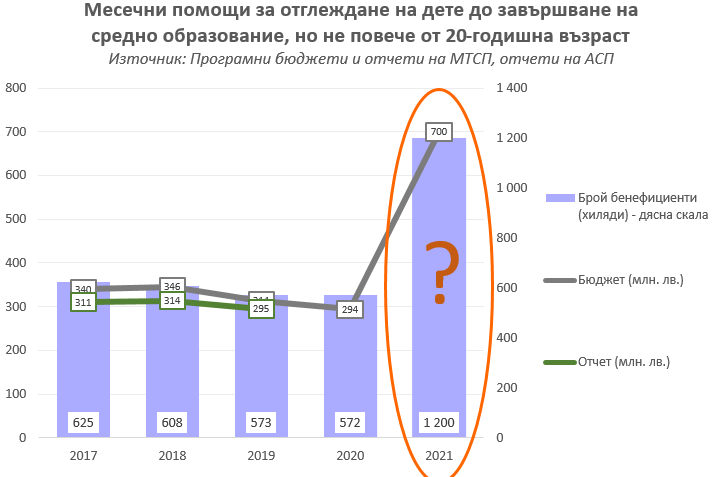 Сега предложението е всички семейства да започнат да получават 40 лв. при едно дете, 90 лв. при две деца и 135 лв. при три деца, и по 20 за всяко следващо. По изказванията на премиера, за да може всички 1,2 млн. деца в страната да вземат тази надбавка, ще трябва да се заделят допълнителни около 400 млн. лв. в бюджета. И в момента тези надбавки са най-голямата мярка, администрирана от министерството на труда както по брой бенефициенти, така и по размер на изхарчените суми. През 2019 г. с такива помощи са подпомогнати 573 хиляди деца в близо 368 хиляди семейства и това е струвало на бюджета и данъкоплатците 295 млн. лева, а за догодина ще трябва да бъдат осигурени близо 700 млн. лв.