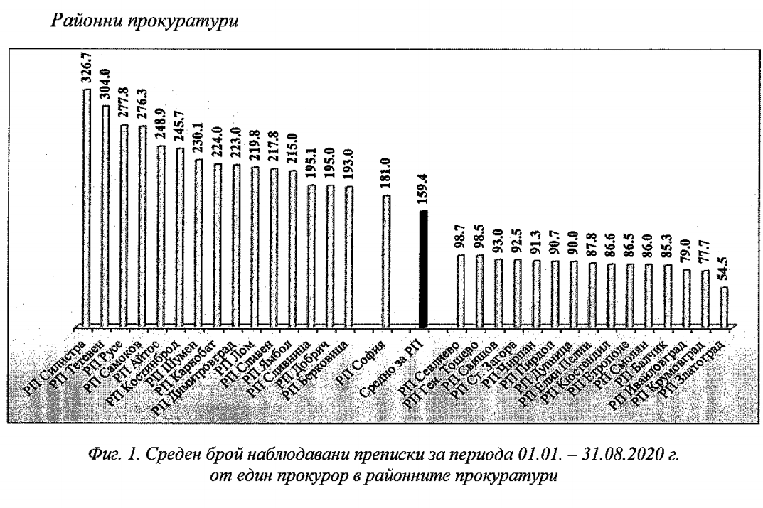 Заслужава да се отбележи изключителният дисбаланс в работата на прокурорите от едно и също ниво - районни.