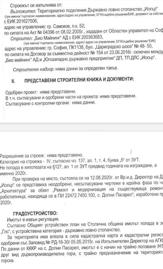 В него се посочва, че няма одобрен проект за строежа на "Зимните сараи" (наричани така поради връзките на Гайтански с Ахмед Доган). По документи имотът е дървопроизводителна гора.