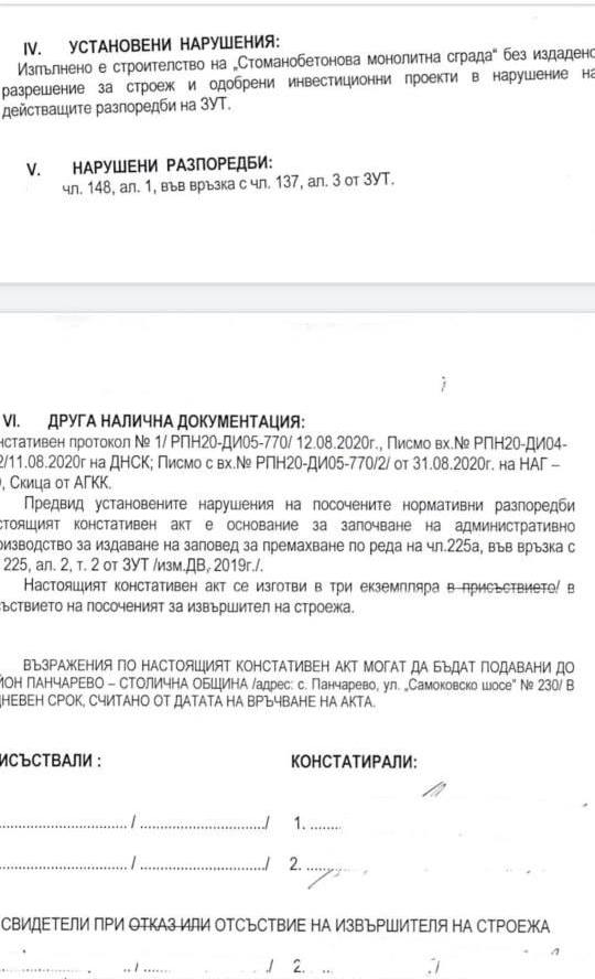 Това вече се установява и в констативен акт от район Панчарево, разкри във фейсбук общинският съветник от "Демократична България" Владислав Панев, получил отговор от ЗДОИ от районния кмет Николай Гюров.