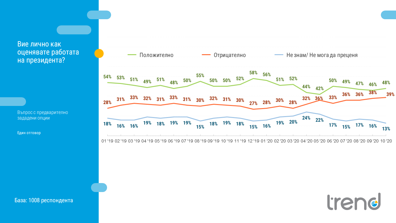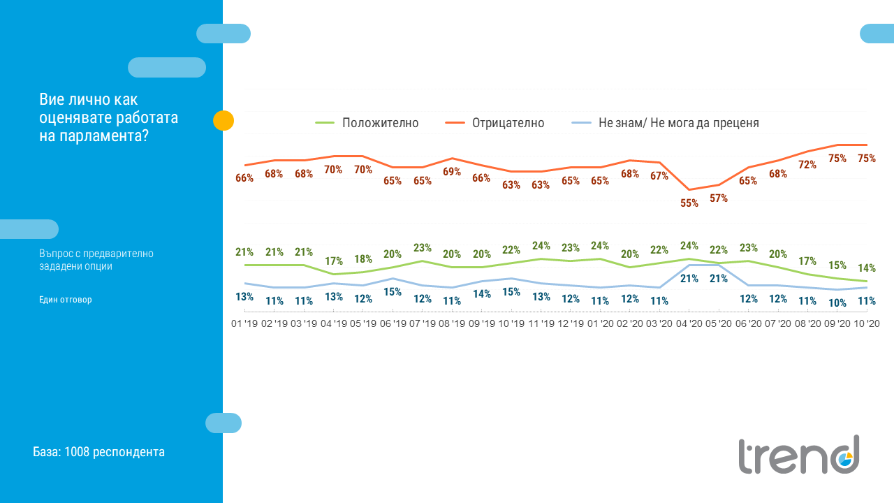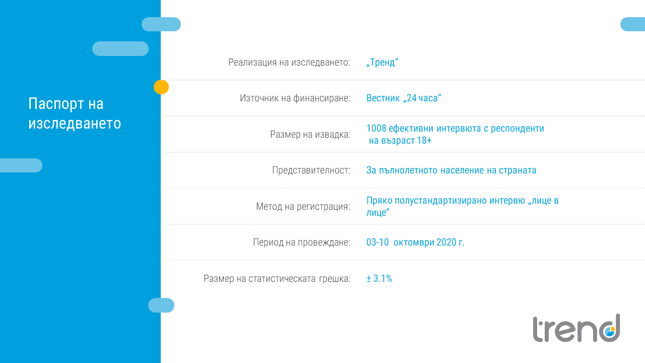 Това сочат данните на "Тренд" за октомври. Националното представително проучване е проведено между 3 и 10 октомври, сред 1008 души*.